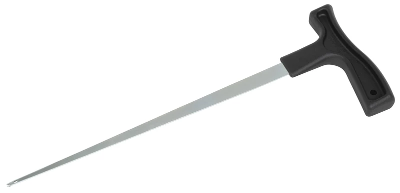 Tip has slotted end to push and a hole to pull wire through windshield bonding. Also allows wire to be inserted closer to the pinch weld. The blade is 10-1/2″ long to reach into tight spaces.