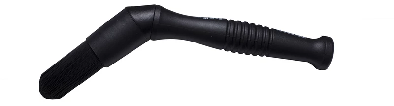 A tough brush that will last and last with an ergonomic design to reduce strain.. Strain-reducing ergonomic design. Bullet-shaped tip resists mushrooming. Durable, injection-molded handle with ribbed design for firm grip. Long-lasting, stiff Trialoy® polyester filament can be used in either petroleum- or water-based cleaning solutions