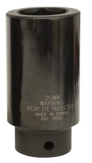 Can be used on 26mm or 1″ applications. Heat-treated, impact-quality alloy steel. Use with 1/2″ drive.