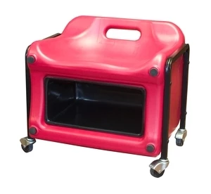 Spacious storage tray below the seat keeps tools, test equipment and parts within easy reach. Perfect for brake and tire service, body work, etc. Wheels pop into tubular steel legs with an outrigger design for added stability.